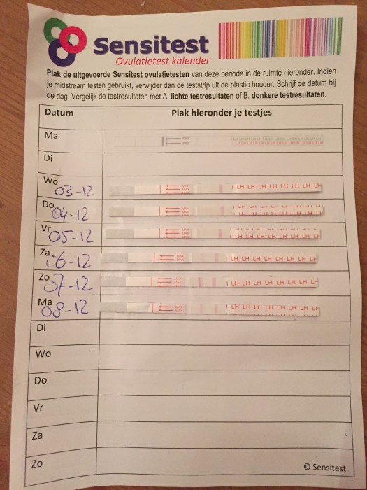 "Al 6 maanden probeer ik zwanger te worden. Nu voor het eerst maar eens ovulatietesten geprobeerd. Op 10 en 11 januari mijn LH piek gevonden en dat was eigenlijk eerder dan ik verwachtte. En nu maar duimen totdat ik een zwangerschapstest kan doen."