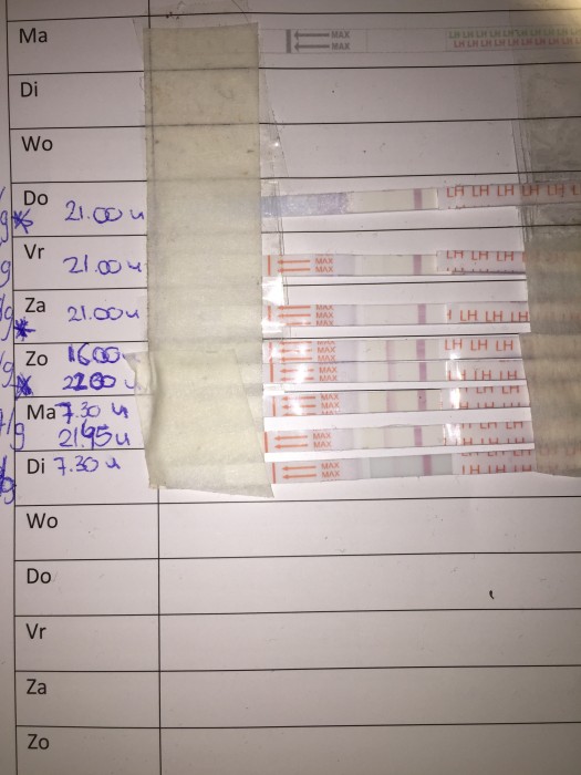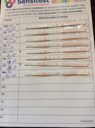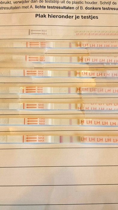 "Voor de eerste keer begonnen met ovulatietesten. Geen echte knaller te zien maar volgens mij toch zondag een positief resultaat gehad. Heel fijn dat je niet alle dagen lijntjes te zien krijgt wat het zelfs met geen knallende test de juiste dag duidelijk maakt! "