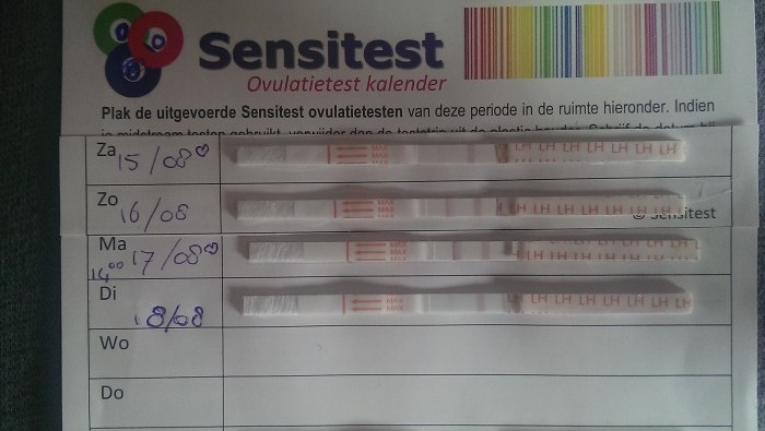 "Na 3 maanden te proberen hebben mijn vriendinnen mij doorverwezen naar ovulatietesten te doen, daarmee dat ik die van Sensitest gekozen heb. Het is duidelijk dat zondag en maandag mijn piekdag zijn, wanneer best een test doen? "